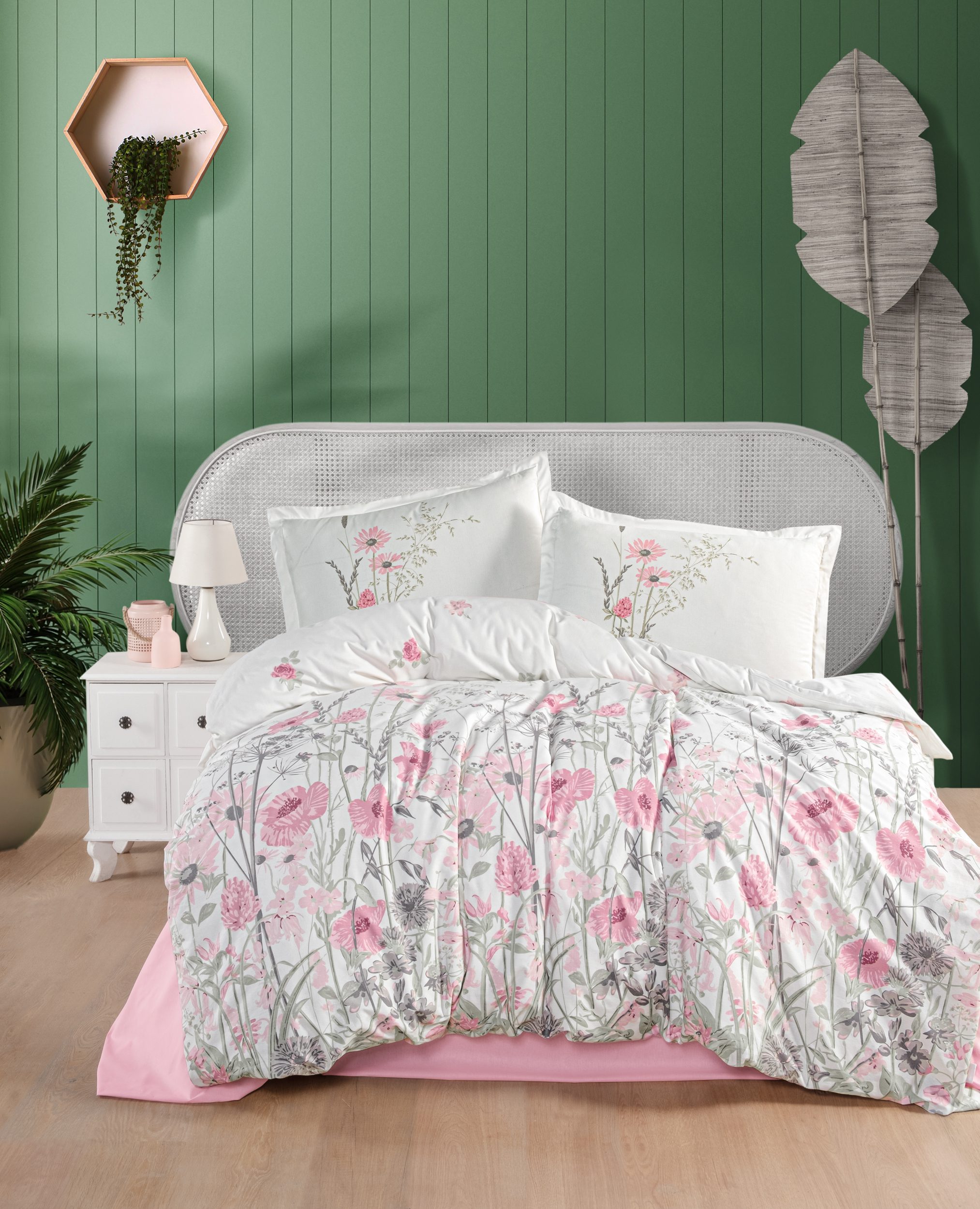 Спалното бельо Clasy Ranforce Angola е изработено от 100% памук ранфорс, който осигурява мекота, здравина и комфорт. Светлата основа в бяло, комбинирана с нежни розови цветове и фини зелени нюанси, създава свежо и пролетно усещане в спалнята. Дизайнерската изработка на марка Clasy придава елегантност и хармония, подходящи за модерни и уютни интериори.